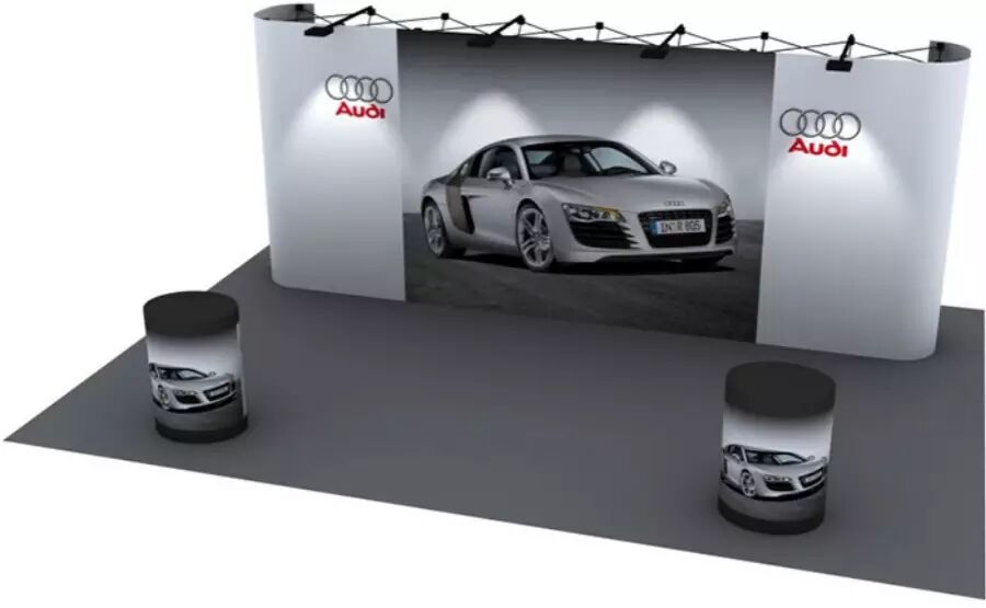 鹰牌展架主要经营的展览展示器材有:易拉宝、X展架、促销台、拉网展架等便携式展览展示器材。这些产品对于想要参加国外展会或是异地展会的企业来说,有很大的优势,整体较传统展示器材更加轻便,占地面积小,容易展开和收起来,展示效果美观、灵动,轻便易携是鹰牌展架所有产品的宗旨。
