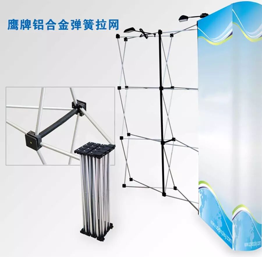 拉网展架美观大气,是一款便携式的背景墙,它的种类也是有很多种,鹰牌展具主要有 :铝合金弹簧拉网、豪华铝方管拉网、强磁型拉网、布拉网。