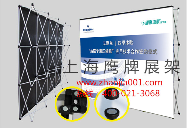 拉网展架特点:造型新颖、线条简洁、轻巧美观、方便运输、容易存放、安装简单、即装即用,