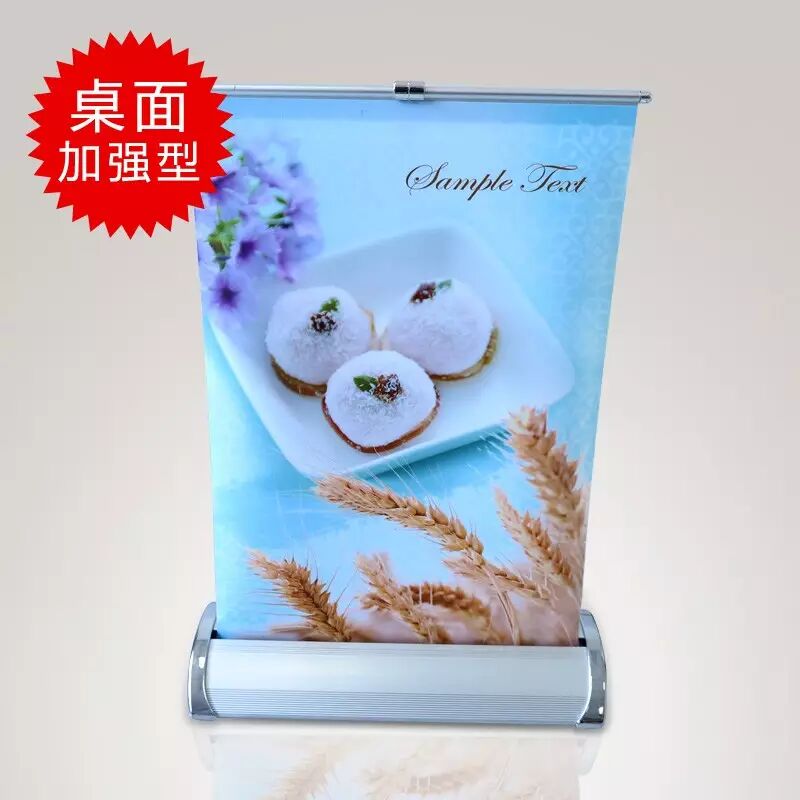 桌面易拉宝又称为袖珍易拉宝,迷你易拉宝,具有展示效果直观,不占用面积的特点;大盒体底座,稳定性强,垂直性能好,小巧精致的设计,方便携带,美观大方,适用于长久使用.