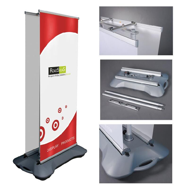 产品介绍 “易拉宝”是展览展示、会议活动、产品促销的过程中所使用的一种广告宣传物料,底部有一个卷筒,内有弹簧,根据弹簧伸缩原理将整张画面收缩卷筒内,伸开画面时,后面用一根三节秆支撑,方便携带,容易安装,故称易拉宝,适合各种展销、展览、促销等使用,体积小,成本低,可更换画面,20秒内即刻展示一幅完美画面。是各种展销会场、展览广告、巡回展示、会议活动的首选展架。